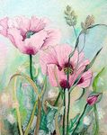 1992Gekoesterd door het zonlicht, even samen... door een zucht van de wind. afmeting: 30 x 40 cm
