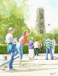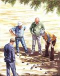 1999Het Petanquespel, een van mijn grootste hobby's. Dit schilderij heb ik gemaakt voor het Zes-steden-toernooi te Helmond in 1999. afmeting: 30 x 40 cm